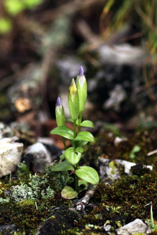 チチブリンドウ3 リンドウ科シロウマリンドウ属 Gentianopsis contorta 別名:ヒロハヒゲリンドウ 1952年、清水大典氏 (植物研究家)が、秩父の 十文字峠付近(石灰岩地帯)で発見した。 石灰岩地帯の岩礫地や草地などに稀に生える 高さ5〜30cmの1年草または越年草(多年生)。 茎は直立し、しばしば分枝、葉は対生し、卵状 楕円形で先はまるく、主脈はやや凹む。 9〜10月、枝先に淡紫色の花を数個つける。 「秩父で発見された ヒマラヤ系のリンドウ科植 物について」によると、同定した佐竹義輔氏は 最初、リンドウ属の新種と考え. 学名は発見者 清水大典氏を記念して (Gentiana simizuana) 和名はチチブリンドウを用意していた。 しかし、その後、 東大植物学研究室所蔵の標 本(満州得利寺産)を調べ、ヒロハヒゲリンドウ であることが判明した。 ヒロハヒゲリンドウは 秩父産のものにはピッタ リしないので. チチブリンドウと呼ぶ方が親しみ があると記している. (埼玉県自然科学博物館 研究報告第6号1955) 別名のヒロハヒゲリンドウは葉が広く毛細状の 根茎がヒゲ状であることに由来する。 リンドウ科の権威大場達之先生はチチブリンド ウには多数の菌が入り込んでおりホソバノツル リンドウにも同じ菌が共存する。 チチブリンドウが分布できるのは. 共生菌が存 在するところに限られ.全ての産地でホソバノツ ルリンドウ共存していると記している。 現在確認されている産地は埼玉(3)、群馬(1)、 長野(3)、滋賀県(1)の8ヶ所のみである。 1952年、清水大典氏 (植物研究家)が、秩父の 十文字峠付近(石灰岩地帯)で発見した。 筆者は長野、群馬、埼玉県の5ヶ所で観察して いるが、個体数は極めて少ない。 2003年〜2011年のチチブリンドウは別ページ 2012年〜2018年のチチブリンドウ2は別ページ ![]() (芽生え) 群馬県 2019.8.23 画像をクリック ![]() (個体A 追跡 蕾1) 群馬県 2019.8.23 画像をクリック ![]() (個体A 追跡 蕾2 《5個の蕾》) 群馬県 2019.9.10 画像をクリック ![]() (個体A 追跡 食害) 群馬県 2019.9.23 画像をクリック ![]() 群馬県 2019.10.2 画像をクリック ![]() 群馬県 2020.9.30 画像をクリック ![]() 群馬県 2020.9.30 画像をクリック ![]() 群馬県 2021.10.8 画像をクリック ![]() (蕾) 群馬県 2022.8.20 画像をクリック ![]() 埼玉県 2022.9.11 画像をクリック ![]() 群馬県 2023.9.14 画像をクリック ![]() (蕾) 埼玉県 2023.9.18 画像をクリック ![]() (リンクは800×1200) 群馬県 2024.9.20 画像をクリック ![]() 群馬県 2024.9.20 画像をクリック ![]() (リンクは800×1200) 群馬県 2025.9.23 画像をクリック トップページへ 前ページへ |