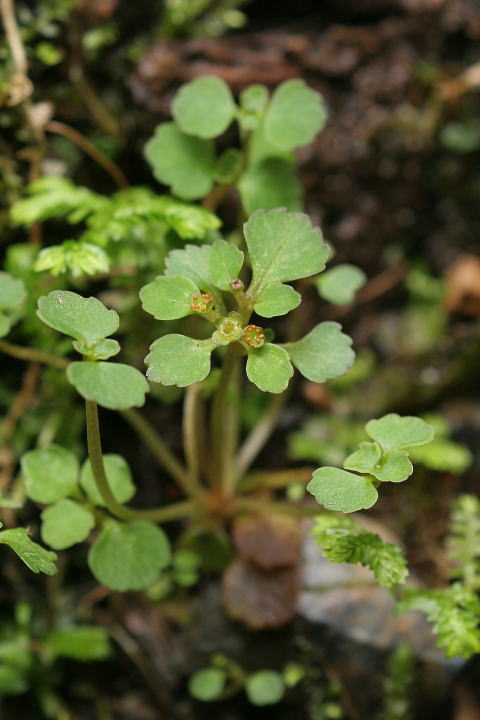 チシマネコノメソウ ユキノシタ科ネコノメソウ属 Chrysosplenium kamtschaticum 本州. 四国. 北海道に分布 山地の湿った林内や沢沿いに生える 高さ5〜15cmの多年草。 葉はへら形で対生または互生、雄蕊 は8個、裂開直前の葯は橙赤色。 花期に根生葉が残ることでイワネコノ メソウとは区別できる。 京都市内に近い沢沿いでボタンネコ ノメソウなどと競演していた。 ![]() 京都府 2008.4.26 画像をクリック ![]() 京都府 2008.4.26 画像をクリック ![]() 京都府 2008.4.26 画像をクリック ![]() 新潟県 2010.3.20 画添をクリック トップページへ 前ページへ |