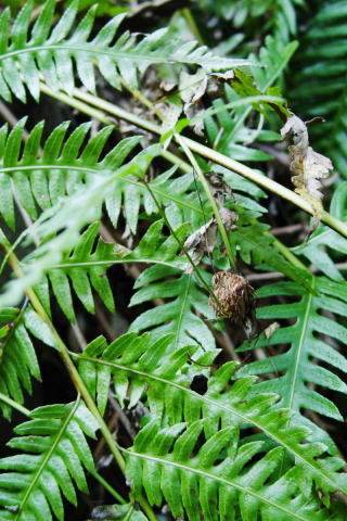 ハイコモチシダ シシガシラ科コモチシダ属 Woodwardia unigemmata 別名:ジョウレンシダ 伊豆半島・九州南部に分布 山中の斜面や崖などにやや稀に生える 長さ70〜100cmの常緑性シダ。 根茎は太く短く.直立. 斜上または横走し 大型で膜質の鱗片を密につける。 上部の羽片と中軸の接点に鱗片に包ま れた大きな無性芽ができる。 胞子嚢群(ソーラス)は長さ2〜3mm.裂片 の中肋に沿ってつく。 「淨蓮の滝」の岩壁などで観察できる。 ![]() 横位置/1200×イ800 静岡県 2003.10.29 画像をクリック ![]() 静岡県 2004.11.3 画像をクリック ![]() (無性芽/リンクは800×1200) 静岡県 2005.11.1 画像をクリック トップページへ 前ページへ |