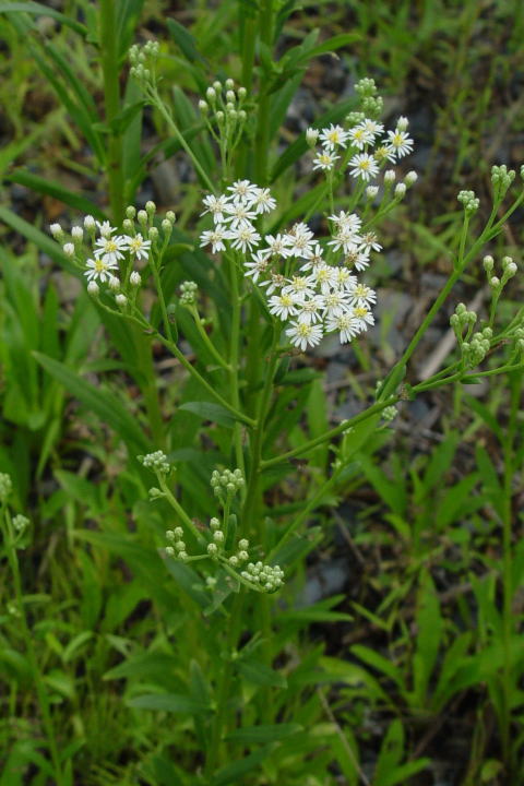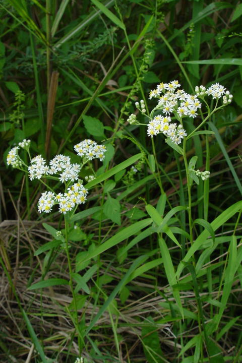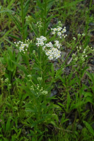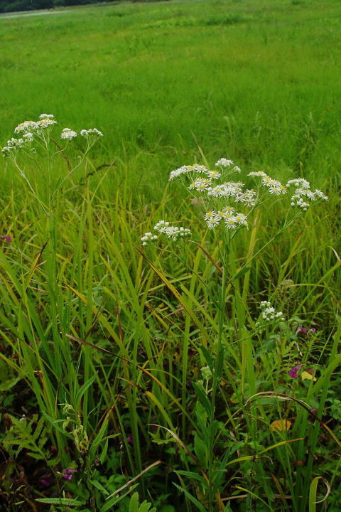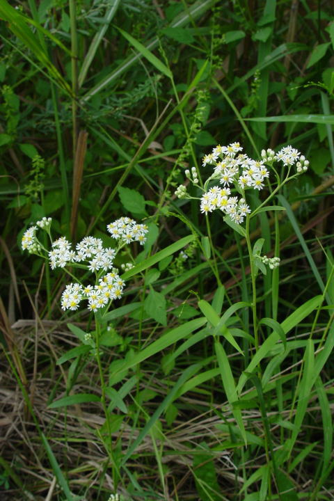 ヒメシオン キク科シオン属 Aster fastugiatus 湿り気のある草地や田の畦などに生える 高さ30〜100cmの多年草。 葉は長さ5.5〜12cm.幅0.5〜1.5cm線状披 針形〜披針形で縁には鋸歯がある。 表面は緑色だが.裏面は緑白色で短毛及 び腺点がある。 8〜10月. 散房状に7〜9mmの小さな白色 の頭花を多数つける。 渡良瀬遊水地は随所に自生.長野県は東 信の休耕田で観察できる。 群馬県は産地が限られ. 絶滅危惧TA類 (群馬県版RDB)の評価。 ![]() 栃木県 2004.8.8 画像をクリック ![]() 栃木県 2004.9.19 画像をクリック ![]() 長野県 2005.9.7 画像をクリック トップページへ 前ページへ |