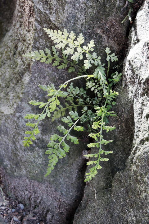 イセザキトラノオ チャセンシダ科チャセンシダ属 Asplenium x kitazawae 1954年.北沢浅冶氏が植物研究雑誌で発表し たクモノスシダ×コバノヒノキシダの交雑種 関東地方以西の凝灰岩などにやや稀に生育 する常緑性シダ植物。 葉質は コバノヒノキシダに似て少し厚みがあ り. 葉身の先にクモノスシダの特徴。 クモイワトラノオ(クモノスシダ×イワトラノオの 交雑種)に似るが. 葉の切れ込みが深く.葉は より厚く. 葉の色も緑が濃い。 和名は最初の発見地.群馬県伊勢崎市(いせ さき…濁らない)に由来する。 筆者は群馬、長野両県の3ヶ所で観察してい るが. 交雑は少なく中々出会えない。 ![]() 群馬県 2006.3.8 ![]() 群馬県 2006.3.8 ![]() (胞子嚢群) 群馬県 2006.3.8 ![]() 長野県 2009.12.10 画像をクリック ![]() 群馬県 2010.12.1 画像をクリック ![]() 長野県 2012.3.6 画像をクリック ![]() (胞子嚢群) 群馬県 2014.11.12 画像をクリック ![]() 群馬県 2016.2.25 画像をクリック ![]() (イセザキトラノオ/片親のクモノスシダ) 群馬県 2017.1.4 画像をクリック ![]() (イセザキトラノオ/片親のクモノスシダ) 群馬県 2017.1.4 画像をクリック ![]() 長野県 2019.11.4 画像をクリック ![]() 長野県 2021.12.1 画像をクリック ![]() 長野県 2021.12.1 画像をクリック ![]() 群馬県 2021.12.17 画像をクリック ![]() 群馬県 2022.1.7 画像をクリック ![]() (成長過程) 群馬県 2022.5.31 画像をクリック ![]() 群馬県 2022.7.21 画像をクリック ![]() 群馬県 2022.11.21 画像をクリック ![]() 群馬県 2022.12.6 画像をクリック ![]() 群馬県 2023.2.22 画像をクリック ![]() 群馬県 2023.5.15 画像をクリック ![]() 群馬県 2023.12.7 画像をクリック ![]() (胞子嚢群) 群馬県 2023.12.22 画像をクリック ![]() 群馬県 2024.1.19 画像をクリック ![]() (積雪) 群馬県 2024.2.7 画像をクリック ![]() 群馬県 2024.10.21 画像をクリック ![]() 群馬県 2026.1.7 画像をクリック トップページへ 前ページへ |