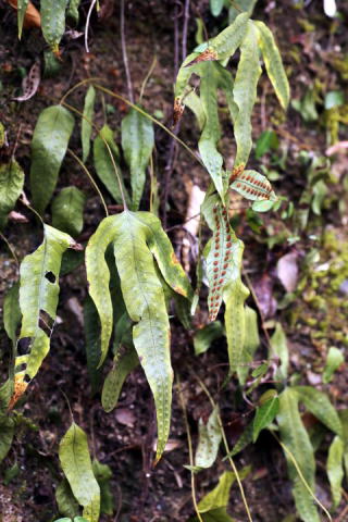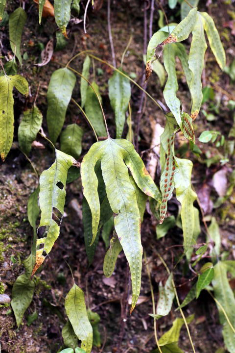 ミツデウラボシ ウラボシ科ミツデウラボシ属 Crypsinus hastatus 北海道以南、四国、九州に分布 低地〜山地の岩上や礫地などに生える 常緑性のシダ植物。 根茎は横走し、密に鱗片がある。 葉身は単葉〜3出複葉、やや稀に5出複 葉、単葉は披針形で鋭尖頭。 胞子嚢群はやや中肋寄りにつく。 群馬県南西部は単葉〜3出複葉まで随 所で観察できる。 ![]() 群馬県 2006.11.22 ![]() 埼玉県 2007.1.23 ![]() 群馬県 2013.2.27 画像をクリック ![]() 群馬県 2014.1.10 画像をクリック ![]() 群馬県 2016.1.26 画像をクリック ![]() 群馬県 2020.11.20 画像をクリック ![]() 群馬県 2021.1.21 画像をクリック ![]() 群馬県 2022.11.24 画像をクリック ![]() 群馬県 2023.1.30 画像をクリック ![]() 群馬県 2024.1.7 画像をクリック ![]() 群馬県 2025.11.25 画像をクリック トップページへ 前ページへ |