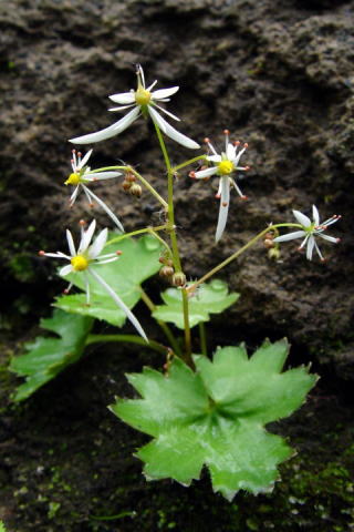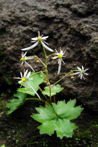 ミヤマダイモンジソウ ユキノシタ科ユキノシタ属 Saxifraga fortunei var. incisolobata 高山帯の岩上や岩場などに生える 高さ10〜20cmの多年草。 花は白色で左右相称.下側の2個の 花弁は上側の花弁より長い。 葉は全て根生. .葉身は掌状に浅中 裂. 表面に短毛が散生する。 母種のダイモンジソウは葉が大きく 全体に長い毛が密生する。 ![]() 長野県 2005.7.24 画像をクリック トップページへ 前ページへ |