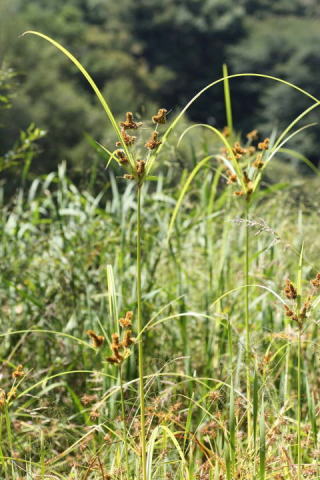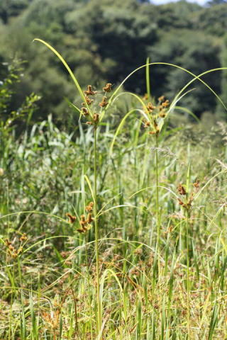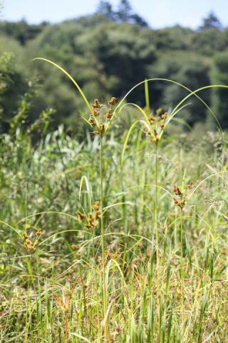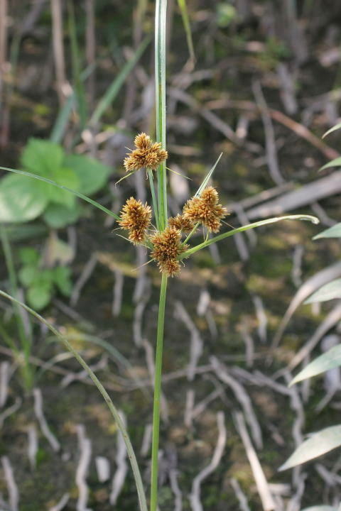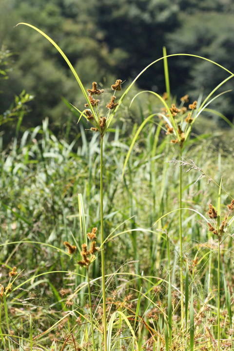 ヌマガヤツリ カヤツリグサ科カヤツリグサ属 Cyperus glomeratus 池や沼、川岸などの水湿地に生える 高さ30〜120cmの1年草。 葉は長さ2〜8mmの線形、葉鞘は濃 褐色、茎は滑らかで太い。 茎の先に長い苞があり、その先から 枝を出し、先端に果穂をつける。 果穂は密集し、長さ3〜4cm、小穂は 長扁平な線形で、密生する。 渡良瀬遊水地は随所で観察できる。 ![]() 栃木県 2008.10.4 画像をクリック ![]() 長野県 2025.9.16 画像をクリック ![]() 長野県 2025.9.16 画像をクリック トップページへ 前ページへ |