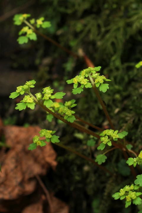 タチネコノメソウ ユキノシタ科ネコノメソウ属 Chrysosplenium tosaense 関東地方以西、四国、九州に分布 山地の林下や沢沿いの湿地に生える 高さ5〜10cmの多年草。 地中に走出枝(ランナー)をのばす。 根生葉は円形で、基部は心形。 萼裂片は緑色で平開し、 長さ約2mm、 雄しべは8個、葯は黄色。 ツルネコノメソウ に似ているが、地上 性の走出枝がないので区別できる。 ![]() 滋賀県 2008.4.26 画像をクリック ![]() 滋賀県 2008.4.26 画像をクリック トップページへ 前ページへ |