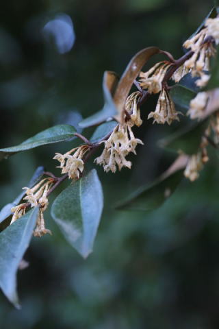 ツルグミ グミ科グミ属 Elaeagnus glabra 丘陵地や海岸の林縁などに生える つる性の常緑低木。 葉身は長さ4〜8cm、幅2.5〜3.5cm の長楕円形で、先は長く尖る。 10〜12月、葉腋に淡黄色〜黄褐色 の小さな花をつける。 果実は長さ1.5cm前後の長楕円状 で、翌年4〜5月に赤く熟す。 花の少ない季節に咲くのは嬉しい。 群馬県は東部や南西部の丘陵地 で、やや稀に観察できる。 ![]() 群馬県 2012.11.29 画像をクリック ![]() 群馬県 2012.11.29 画像をクリック ![]() (若い果実) 群馬県 2013.4.23 画像をクリック ![]() (果実) 群馬県 2013.5.20 画像をクリック ![]() (果実) 群馬県 2013.5.29 画像をクリック ![]() (葉の裏面) 群馬県 2014.10.21 画像をクリック ![]() (参考:オオナワシログミ(マルバグミ×ナワシログミ) 群馬県 2016.12.26 画像をクリック ![]() 群馬県 2017.11.10 画像をクリック ![]() 群馬県 2018.10.17 画像をクリック ![]() (未熟果) 群馬県 2018.12.9 画像をクリック ![]() 群馬県 2019.11.26 画像をクリック ![]() 群馬県 2020.11.7 画像をクリック ![]() 群馬県 2020.11.7 画像をクリック ![]() 群馬県 2020.12.2 画像をクリック ![]() 群馬県 2021.10.25 画像をクリック ![]() 群馬県 2022.11.8 画像をクリック ![]() 群馬県 2023.11.10 画像をクリック ![]() 群馬県 2024.11.15 画像をクリック ![]() 群馬県 2024.11.15 画像をクリック ![]() 群馬県 2025.11.10 画像をクリック ![]() 群馬県 2025.11.10 画像をクリック トップページへ 前ページへ |