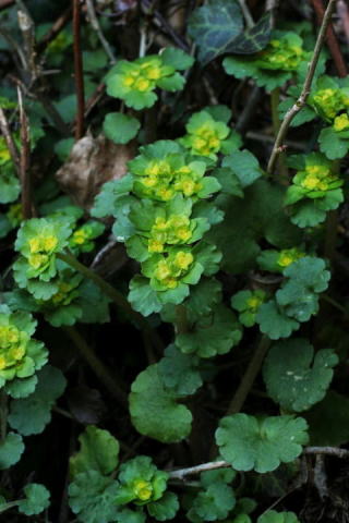 ヤマネコノメソウ ユキノシタ科ネコノメソウ属 Chrysosplenium japonicum 山野の湿った林下や沢沿いなどに生える 高さ10〜20cmの多年草。 茎葉は互生し、腎円形で長さ1〜3cm、平 らな鋸歯がある。 萼裂片は黄緑色で平開する。 雄しべはふつう8個、 時に4個、葯は黄色。 全体に長毛が散生する。 秩父市は線路際の林下に群生していた。 群馬県は自生地が限られている。 ![]() 埼玉県 2007.3.13 画像をクリック ![]() 埼玉県 2007.3.13 画像をクリック トップページへ 前ページへ |