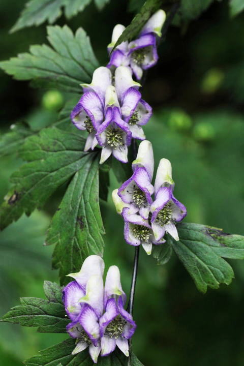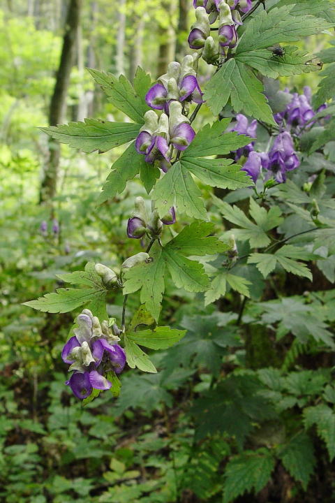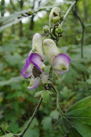 ヤマトリカブト キンポウゲ科トリカブト属 Acomitum japonicum ssp. japonicaum 関東地方〜中部地方に分布 山地の林内や林縁などにやや稀に生える 高さ60〜200cmの多年草。 葉は3〜5中裂、 切れ込みはやや浅く、長 さ6〜20cm、幅6〜20cm。 花柄には屈毛が密生、雄蕊はふつう無毛、 毛のあるものもある。 上萼片は僧帽形、嘴は水平につきだす。 花弁の距は太くて長い。 分布域はごく狭く、 関東地方西部〜中部 地方東部に限られている。 長野県植物誌(1997)にはヤマトリカブトの 記載がなく、 従来ヤマトリカブトとされてき た多くはツクバトリカブトと確認された。 ![]() (2色咲き) 群馬県 2003.9.14 画像をクリック ![]() 群馬県 2005.9.14 画像をクリック ![]() (ヤマトリカブト×ナンタイブシの可能性も?) 群馬県 2015.8.24 画像をクリック ![]() (色彩変異) 群馬県 2015.9.4 画像をクリック ![]() 群馬県 2021.9.13 画像をクリック ![]() (花柄/屈毛) 群馬県 2023.9.14 画像をクリック ![]() 群馬県 2023.9.14 画像をクリック トップページへ 前ページへ |