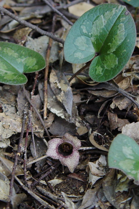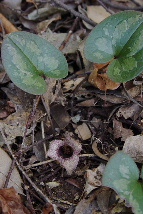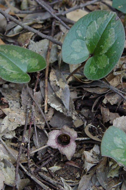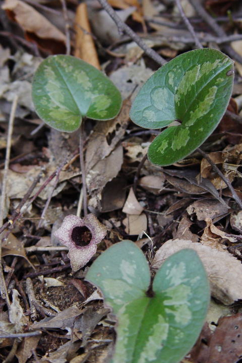 イワタカンアオイ ウマノスズクサ科カンアオイ属 Heterotropa kurosawae 静岡県西部と愛知県東部に分布 丘陵地の林内や林縁などに稀に生育する 常緑の多年草。 カンアオイに似ているが、葉は円形で萼筒 の内面に約30本の縦の隆起線と約10本の 横の隆起線があって格子模様が細密にな り、萼裂片は細毛がある。 イワタカンアオイ、スズカカンアオイが見た くて温暖な駿河路を訪ねる。 この丘陵地にはウスギムヨウランのガラや コクランの常緑葉が多数見られた。 早朝3時35分に自宅を出発. 目的地に着い たのは8時20分、往復620kmの花旅は、さ すがに疲れた。 ![]() 静岡県 2005.1.22 画像をクリック ![]() 静岡県 2005.1.22 画像をクリック トップページへ 前ページへ |