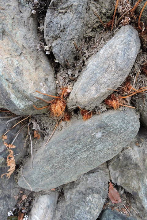 群馬県南西部の石垣にはヒメウラジロや