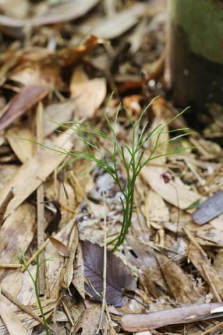 マツバラン マツバラン科マツバラン属 Psilotum nudum 樹幹や岩場の割れ目などにやや稀に 生育する常緑性のシダ植物。 地下茎は蜜に2叉状に分枝し、褐色の 仮根を密生するが、根はない。 地上茎は直立することも斜めに下垂す ることもあり、数回2叉分枝して、大き いものは長さ40cmくらいになる。 枝には3稜があり、稜の上に小突起が 見られる。 胞子嚢は枝の上部につき、3室に分か れ、はじめ緑色であるが、熟すと黄色 〜黄褐色に変わる。 群馬県は赤城山麓、 妙義山麓で見ら れるが、数は少ない。 2007年12月、群馬県南部の竹林(マダ ケ)でも新たに発見された。 この産地は地上に生育 (約50個体)し ていたが、逸出とは考え難い。 ![]() 栃木県 2003.6.19 画像をクリック ![]() 群馬県 2006.10.19 画像をクリック ![]() 群馬県 2008.1.3 画像をクリック ![]() (松竹) 群馬県 2008.1.3 画像をクリック ![]() (胞子嚢) 群馬県 2014.11.17 画像をクリック ![]() 群馬県 2016.1.15 画像をクリック ![]() 群馬県 2017.2.14 画像をクリック ![]() 群馬県 2017.12.27 画像をクリック ![]() (2裂した葉状突起に胞子嚢) 群馬県 2018.8.10 画像をクリック ![]() (胞子嚢) 群馬県 2018.8.10 画像をクリック ![]() 群馬県 2019.12.12 画像をクリック ![]() 群馬県 2020.11.24 画像をクリック ![]() 群馬県 2022.5.31 画像をクリック ![]() (胞子嚢群) 群馬県 2022.7.26 画像をクリック ![]() 群馬県 2022.12.6 画像をクリック ![]() 群馬県 2023.12.7 画像をクリック ![]() 群馬県 2023.12.22 画像をクリック ![]() (松竹) 群馬県 2024.1.4 画像をクリック ![]() 群馬県 2024.1.19 画像をクリック ![]() 群馬県 2024.9.5 画像をクリック ![]() 群馬県 2025.1.5 画像をクリック ![]() 群馬県 2025.10.17 画像をクリック トップページへ 前ページへ |