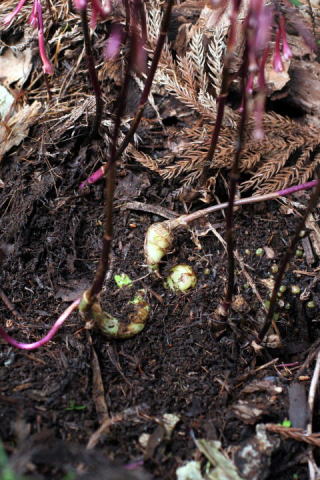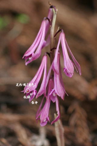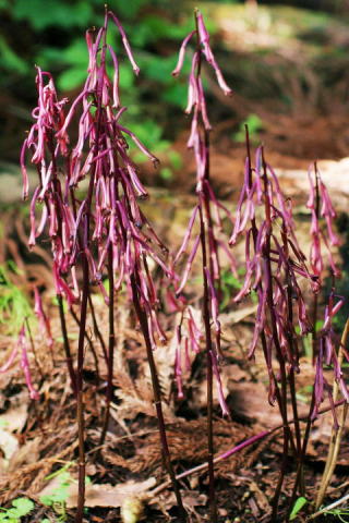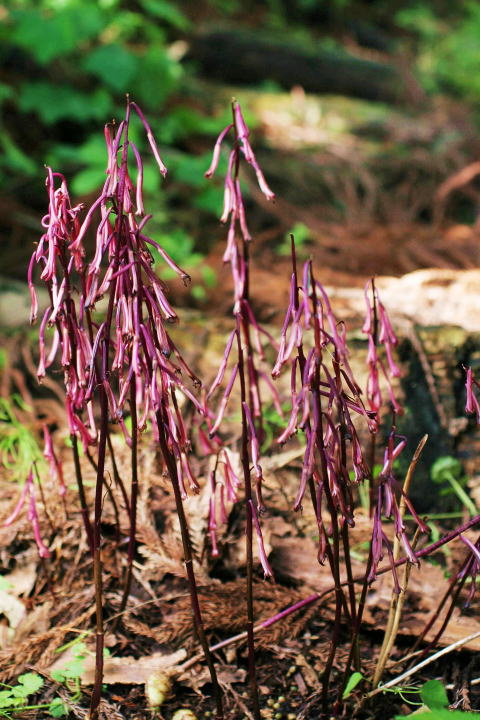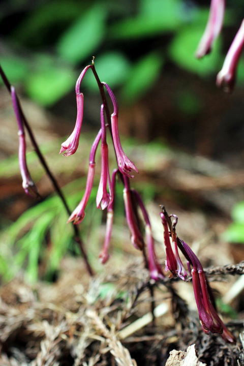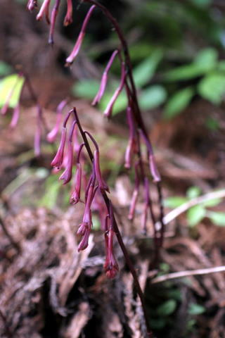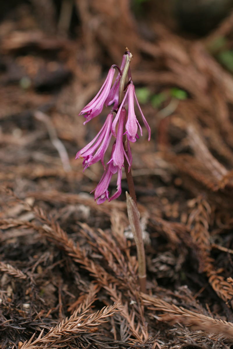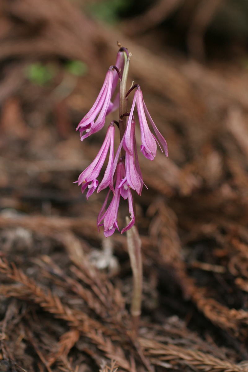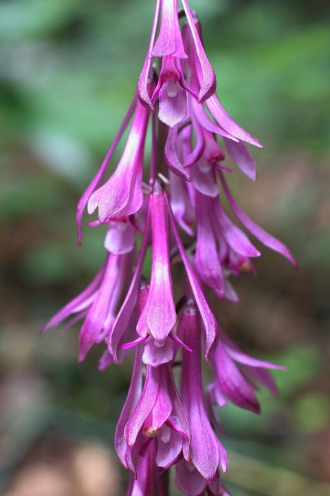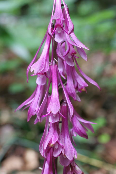モイワラン ラン科サイハイラン属 Cremastra aphylla Yukawa 山地の針葉常緑樹林下などに稀に生える 高さ15〜30cmの多年草。 北海道藻岩山で最初に見つかり、1999年、 遊川博士が新種として発表した。 菌寄生に強くシフトした生活史を展開、全 く葉が生じないとの記載文もある。 5〜6月、褐色を帯びた赤紫色の美しい花 を総状に多数つける。 埼玉で見た個体は小さな葉を1枚つけてい たが、遊川博士によって葉のあるタイプの モイワランと同定されている。 幸いにも埼玉・長野の3ヵ所で観察する機 会に恵まれたが、沢沿いのスギ植林地で 廃ホダ木があるなど全て共通していた。 埼玉の産地にサイハイランは見当たらな かったが、 長野の産地は5mほど離れた 場所にサイハイランが自生していた。 長野の産地で両種が混生していたことは モイワランの起源を知る上で興味深い。 (環境省評価:絶滅危惧TA類) ![]() 埼玉県 2009.6.4 画像をクリック ![]() 珍しい葉のあるタイプ/リンクは800×1200) 埼玉県 2009.6.4 画像をクリック ![]() (小さな葉をつけた個体/遊川博士同定) 埼玉県 2009.5.31 画像をクリック ![]() (標準の無葉タイプ) 長野県 2009.6.17 画像をクリック ![]() (露出していたバルブ) 長野県 2009.6.17 画像をクリック ![]() 標準の無葉タイプ/リンクは800×1200) 長野県 2009.6.17 画像をクリック ![]() (蕾) 長野県 2009.6.6 画像をクリック ![]() (花期終盤) 長野県 2008.6.24 画像をクリック ![]() (花期終盤) 長野県 2008.6.24 画像をクリック ![]() (果実期) 石川県 2012.7.14 画像をクリック ![]() 埼玉県 2017.6.18 画像をクリック ![]() (リンクは800×1200) 埼玉県 2017.6.18 画像をクリック ![]() 埼玉県 2017.6.18 画像をクリック トップページへ 前ページへ |