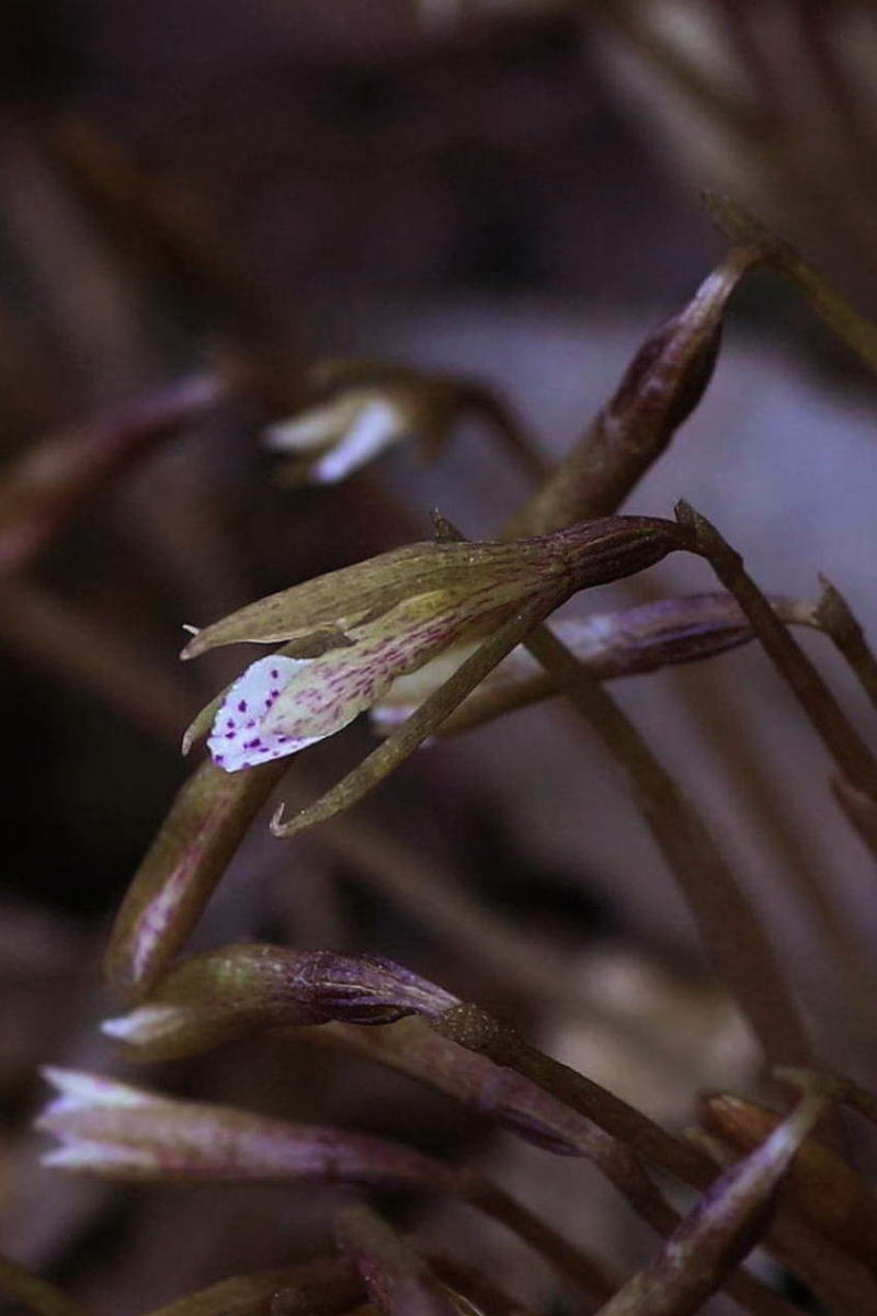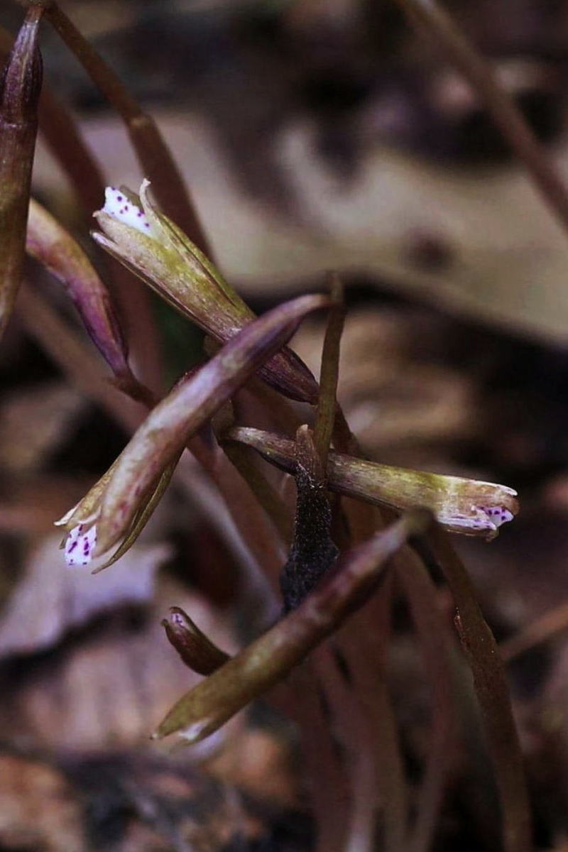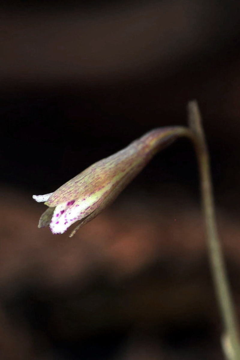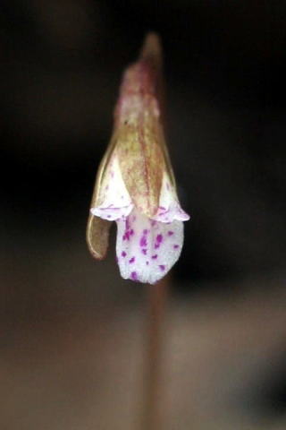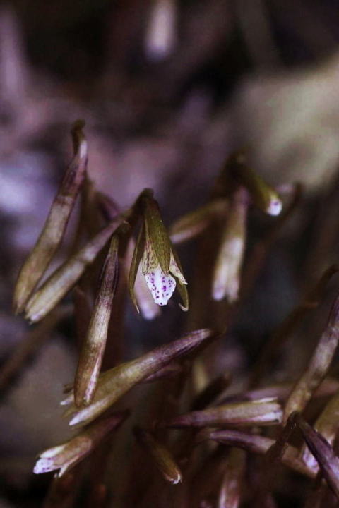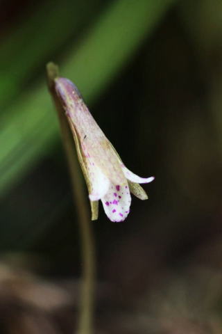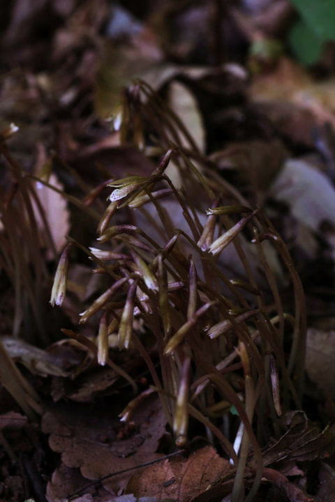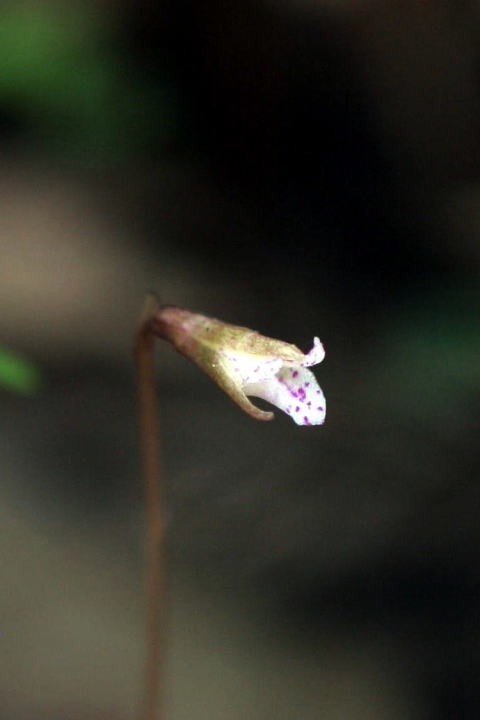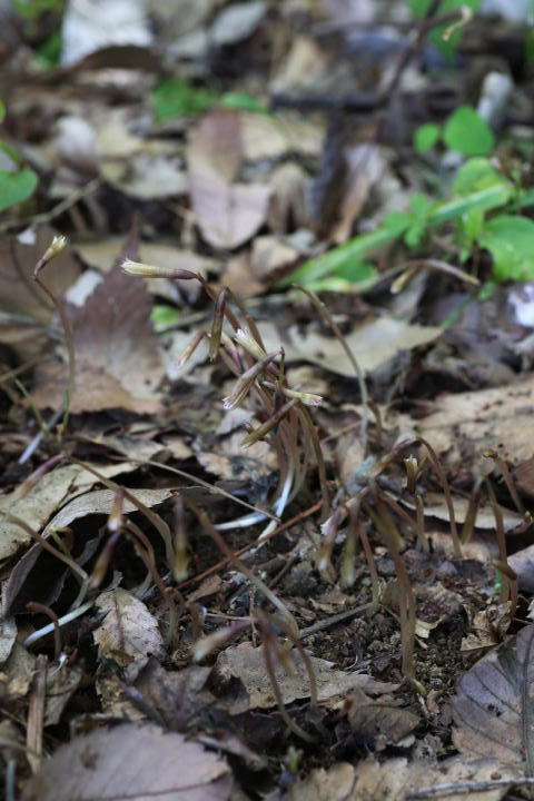 ムカゴサイシン ラン科ムカゴサイシン属 Nervilia nipponica 関東地方北部〜沖縄県に分布 常緑樹林(針・広葉)の林床に稀に生える 高さ5〜10cmの小型の野生ラン。 5〜7月.花茎の先に紅紫色の花(半開き) を1個、やや横向きにつける。 葉身はやや5角形状心形で花が終わった 後、7〜8月に出現する。 和名は地下の球茎をヤマノイモのムカゴ、 葉をコバノカンアオイに例えたもの。 とにかく小さな植物(爪楊枝くらい)で、花 が終ってから出現する葉を確認して置か ないと.花の撮影は困難である。 栃木県の植物仲間Nさなどにご案内いた だき.この珍しい植物を観察できた。 和名の由来になっている球茎 (ムカゴ)を 研究者が許可を得て採取.標本にする前 に撮影させていただいた。 産地は極めて少なく.中々出会えない。 ![]() 栃木県 2007.6.18 画像をクリック ![]() 栃木県 2007.6.18 画像をクリック ![]() (葉) 栃木県 2003.8.29 ![]() (果実) 栃木県 2011.7.9 画像をクリック ![]() (球茎) 栃木県 2011.7.9 画像をクリック ![]() 栃木県 2012.6.17 画像をクリック ![]() (リンクは800×1200) 栃木県 2012.6.17 画像をクリック ![]() (リンクは800×1200) 栃木県 2012.6.17 画像をクリック ![]() 栃木県 2012.6.17 画像をクリック ![]() 栃木県 2013.6.23 画像をクリック ![]() (子房.膨らむ) 栃木県 2016.6.19 画像をクリック ![]() 東京都 2023.5.27 画像をクリック ![]() 東京都 2023.5.27 画像をクリック ![]() 東京都 2023.5.27 画像をクリック トップページへ 前ページへ |