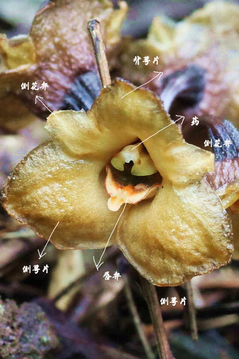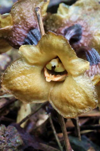 ナンゴクヤツシロラン ラン科オニノヤガラ属 Gastrodia shimizuana Tuyama 沖縄県(本島・西表島)に分布 常緑樹林下の林床・林縁に稀に生える 高さ4〜8cmの腐生ラン。 根は肥大し長さ20〜30cm、幅6〜9mm で地中を這い、時に露出する。 2〜3月、 茎頂の総状花序に黄褐色の 花を1〜8個つける。 画像の個体Bは筆者が撮影した前後は 唇弁が完全に開いていた。 全く気づかなかったが、 ポリネーターを 惹き寄せていた可能性が高い。 蕾を含め10数個体観察したが、産地は 限られ、出会えたら幸運である。 快く.ご案内いただた友人には記して感 謝の意を表したい。 唇弁は送粉者が入ったとき以外でも定 期的に上下移動するので. 送粉者が訪 れた事が 原因と判断するのは難しいと 研究者に教示いただいた。 ![]() (個体A/リンクは8001200) 沖縄県 2016.2.27 画像をクリック ![]() 沖縄県 2016.2.27 画像をクリック ![]() (個体A/リンクは800×1200) 沖縄県 2016.2.27 画像をクリック ![]() (個体A/リンクは800×1200) 沖縄県 2016.2.27 画像をクリック ![]() (個体A) 沖縄県 2016.2.27 画像をクリック ![]() (リンクは800×1200) 沖縄県 2016.2.27 画像をクリック ![]() (個体A) 沖縄県 2016.2.27 画像をクリック ![]() (個体A) 沖縄県 2016.2.27 画像をクリック ![]() (一時的に唇弁が閉じた個体B/リンクは800×1200) 沖縄県 2016.2.27 画像をクリック ![]() 沖縄県 2016.2.27 画像をクリック ![]() (露出していた太い塊茎 ) 沖縄県 2016.2.27 画像をクリック ![]() (蕾) 沖縄県 2016.2.27 画像をクリック トップページへ 前ページへ |