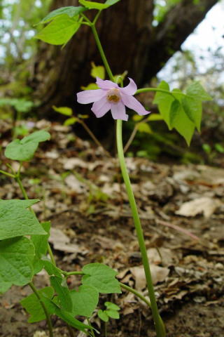 5〜6月.葉のつけ根から花茎を伸ばし淡紅
